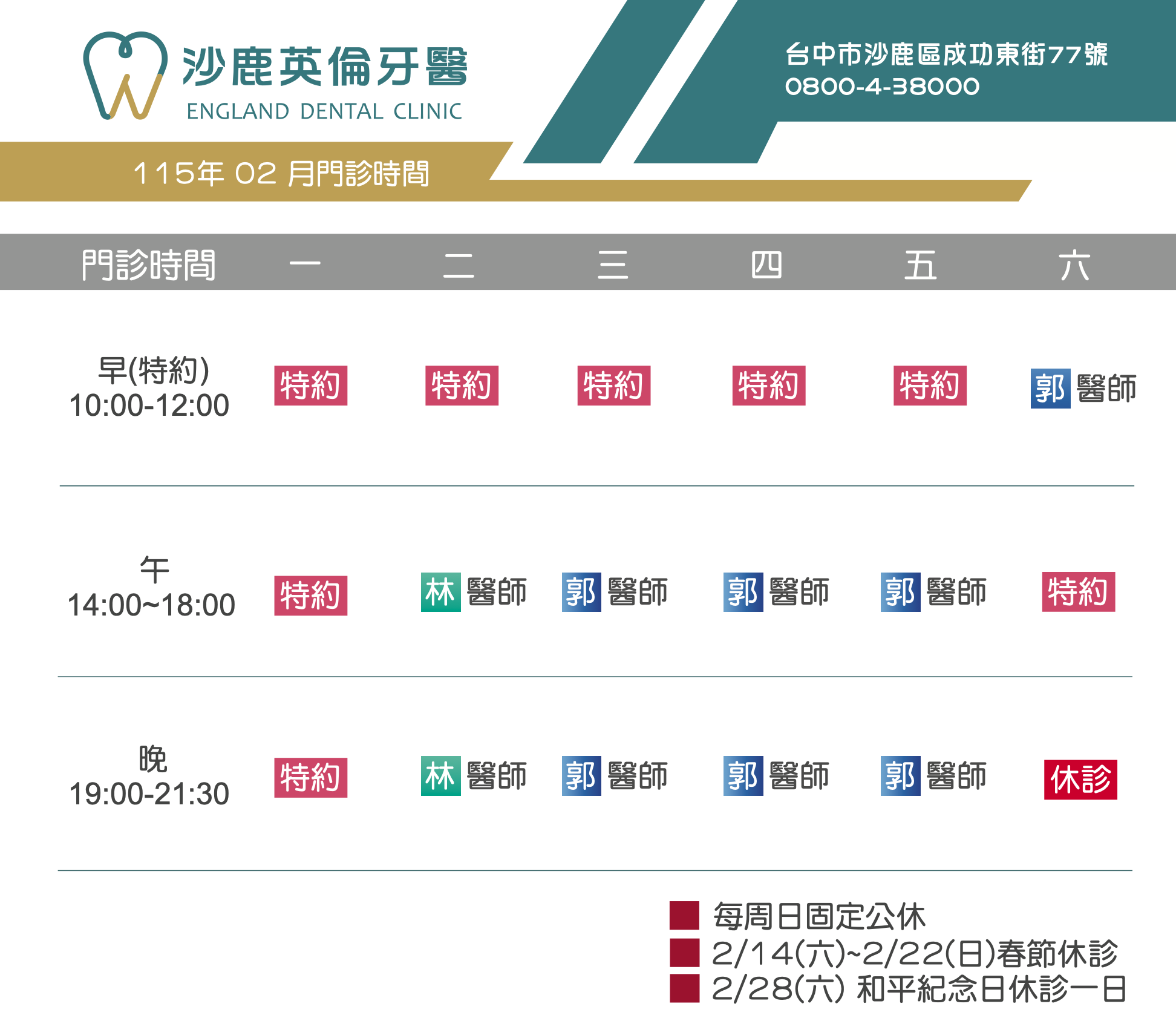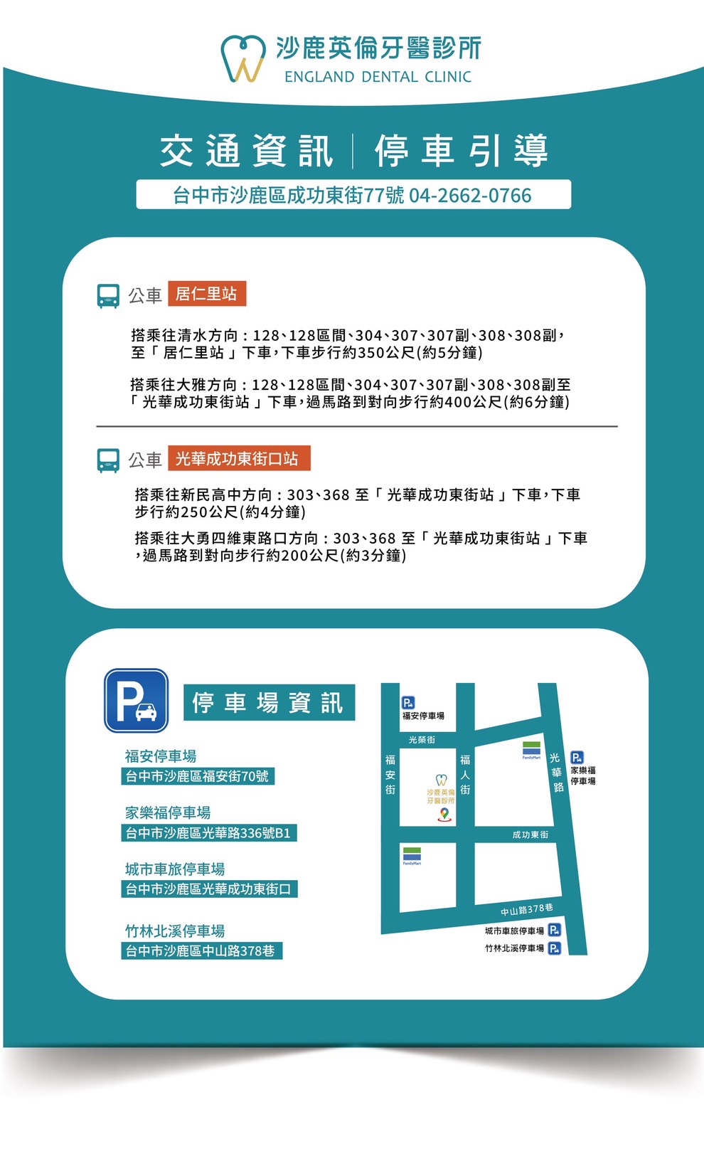 英倫沙鹿診所是經驗豐富的植牙團隊,由宋睿丞醫師帶領的團隊擅於執行手術,在牙齦製造一個植入傷口,再將人工牙根植入。由於手術時間不常,傷口縫合後腫脹疼痛的程度也相對較輕微。同時,術後恢復的速度很快,手術後不會影響日常生活,多數仍可照常日常活動,患者在手術過程中的舒適度增加,也節省許多醫師與患者的寶貴時間!